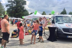 Meist sind wir einen halben Tag vor Ort, also ungefähr vier Stunden. Von den rund 200 Flyern, die wir mitnehmen, werden wir in der Regel 100 los – meist an Leute über vierzig, etwa zu gleichen Teilen Männer und Frauen, manche mit und manche ohne Migrationshintergrund. Die Anzahl der Besucher variiert und: Wenn’s zu heiß oder total verregnet ist, kommen natürlich nicht so viele (lacht). Aber über unser Glücksrad oder die Tombola versuchen wir, die Aufmerksamkeit der Passanten auf uns zu ziehen. Oft ist dann richtig was los am Stand, wir kommen mit einzelnen ins Gespräch, versuchen das Tabu-Thema Analphabetismus aufzubrechen und das Wissen darüber zu erweitern.