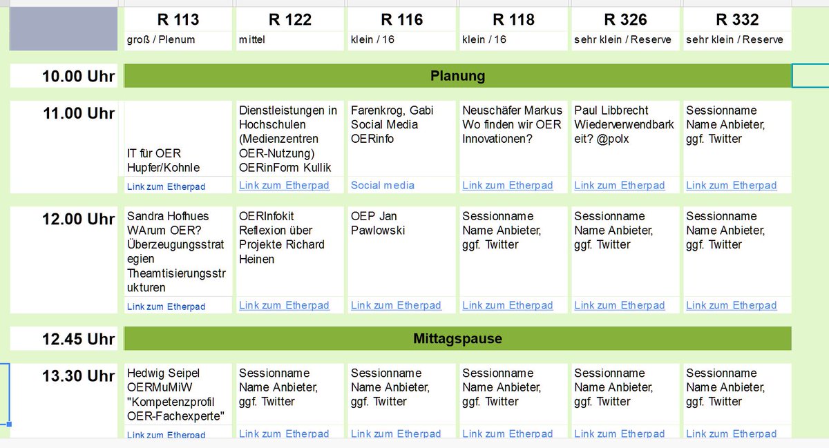 Und so sieht die Planung für die angebotenen Workshops aus